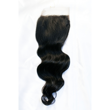 100 % Handmade with Sew-in, 100% Natural Black. Size of lace is 4" X 4".